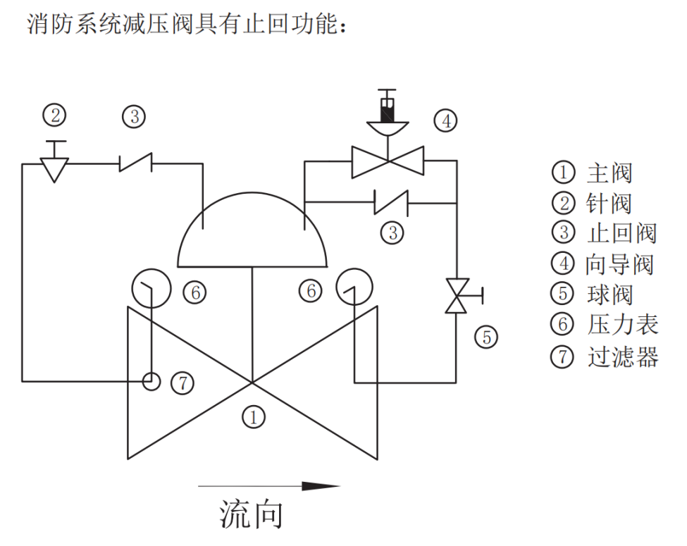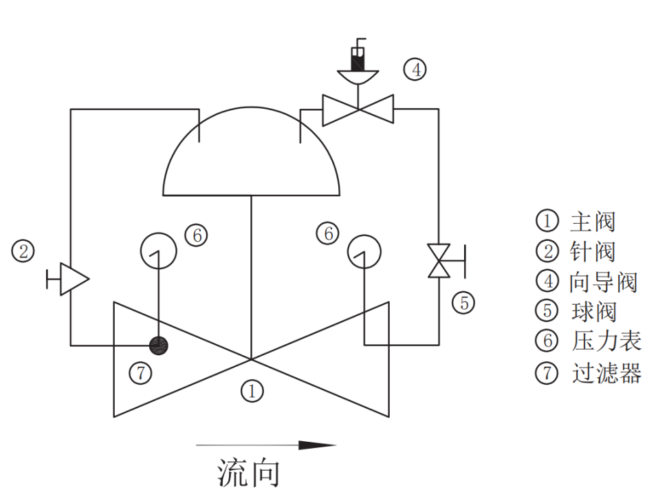 控制主阀的固定出口压力,不因主阀上游进口压力变化而改变,也不因主阀下游出口用水量变化而改变其出口正力。