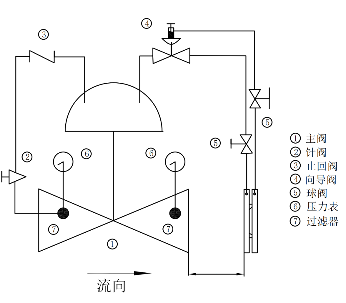 透过预先设定的向导阀,可使通过主阀水量为一固定流量,不会因主阀上游之压力变化而影响下游流量。